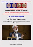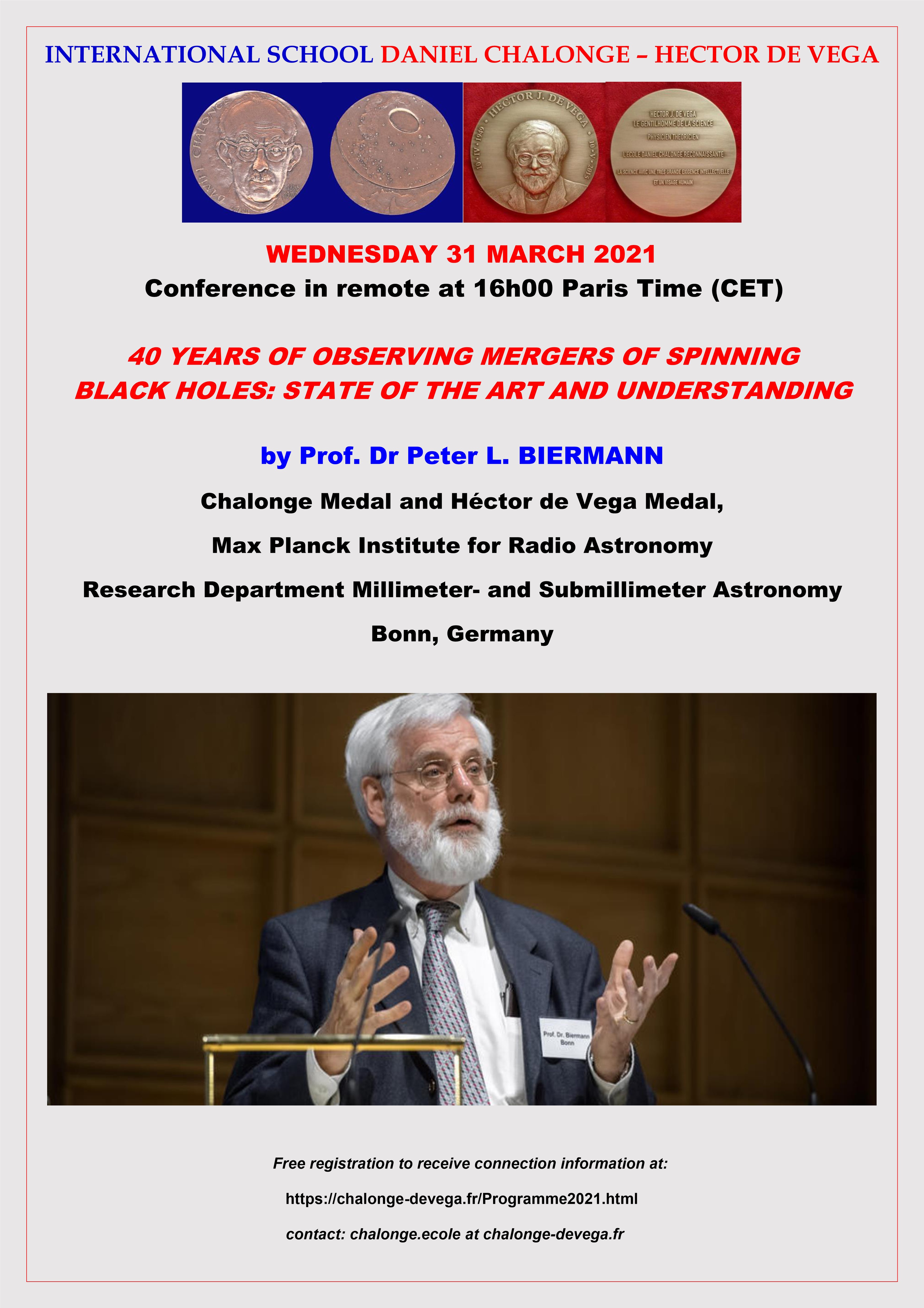 - Wednesday 31 March 2021: Prof Dr Peter L. BIERMANN, Chalonge Medal and Hector de Vega Medal, Max Planck Institute for Radio Astronomy, Research Department of Millimeter - and Submillimeter Astronomy, Bonn, Germany.