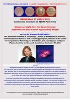 - Wednesday 17 March 2021: Prof. Dr Manuela CAMPANELLI, Professor at RIT - Rochester Institute of Technology- School of Mathematical Sciences and Astrophysical Sciences and Technology Program, Director of the Center for Computational Relativity and Gravitation, and Astrophysics and Space Physics Institute for Research Excellence, Rochester NY: