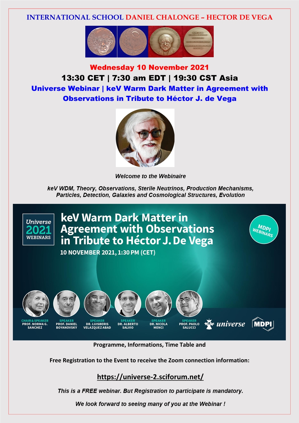 - Special Issue keV Warm Dark Matter in Tribute to Hector de Vega (Free of Charge):