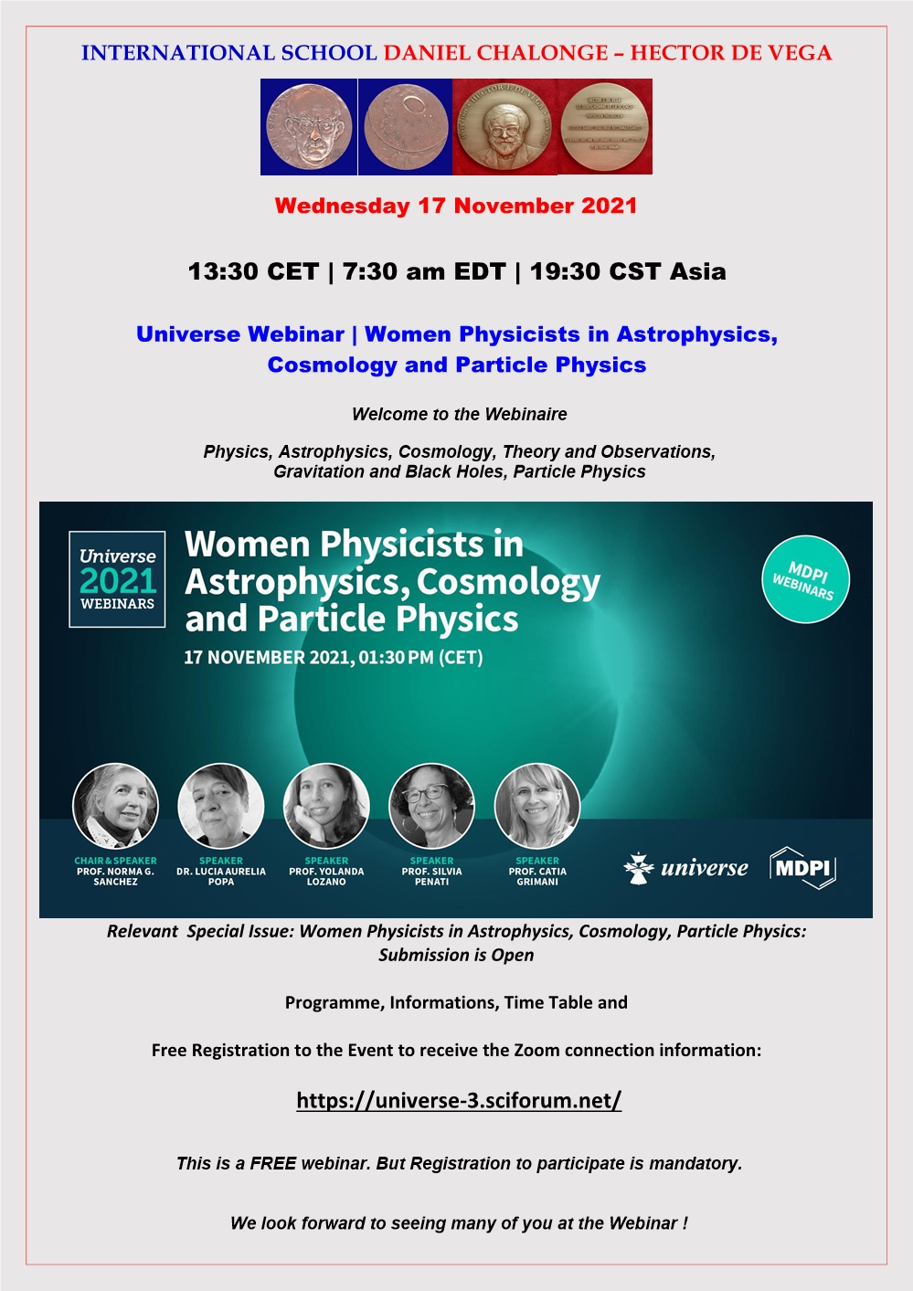 Universe Special Webinaire : Women Physicists in Astrophysics, Cosmology and Particle Physicists.