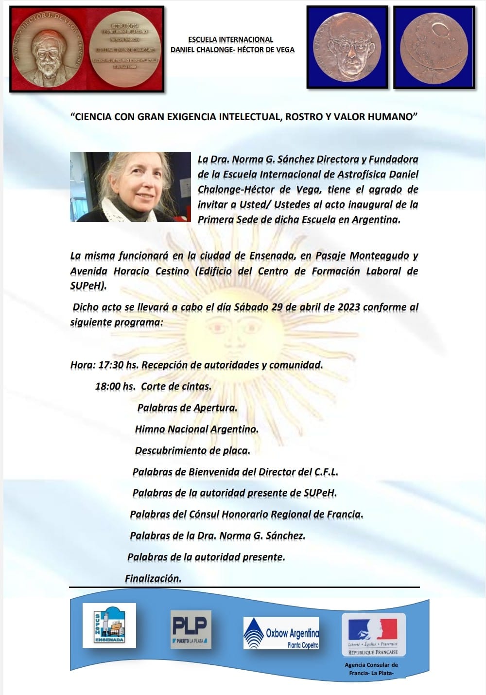 - 29 Avril 2023 : Inauguration 1ère Siège Ecole Internationale d'Astrophysique Daniel Chalonge - Héctor de Vega en Argentine :