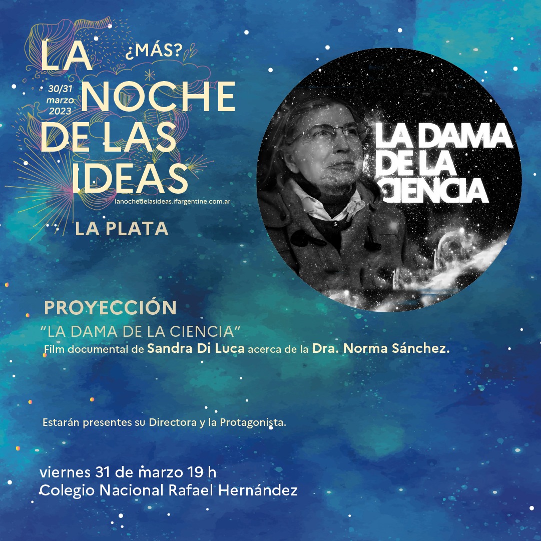 - 31 Mars 2023: Projection du Film "La dama de la Ciencia", Auditorium Colegio Nacional UNLP, 19hs :
