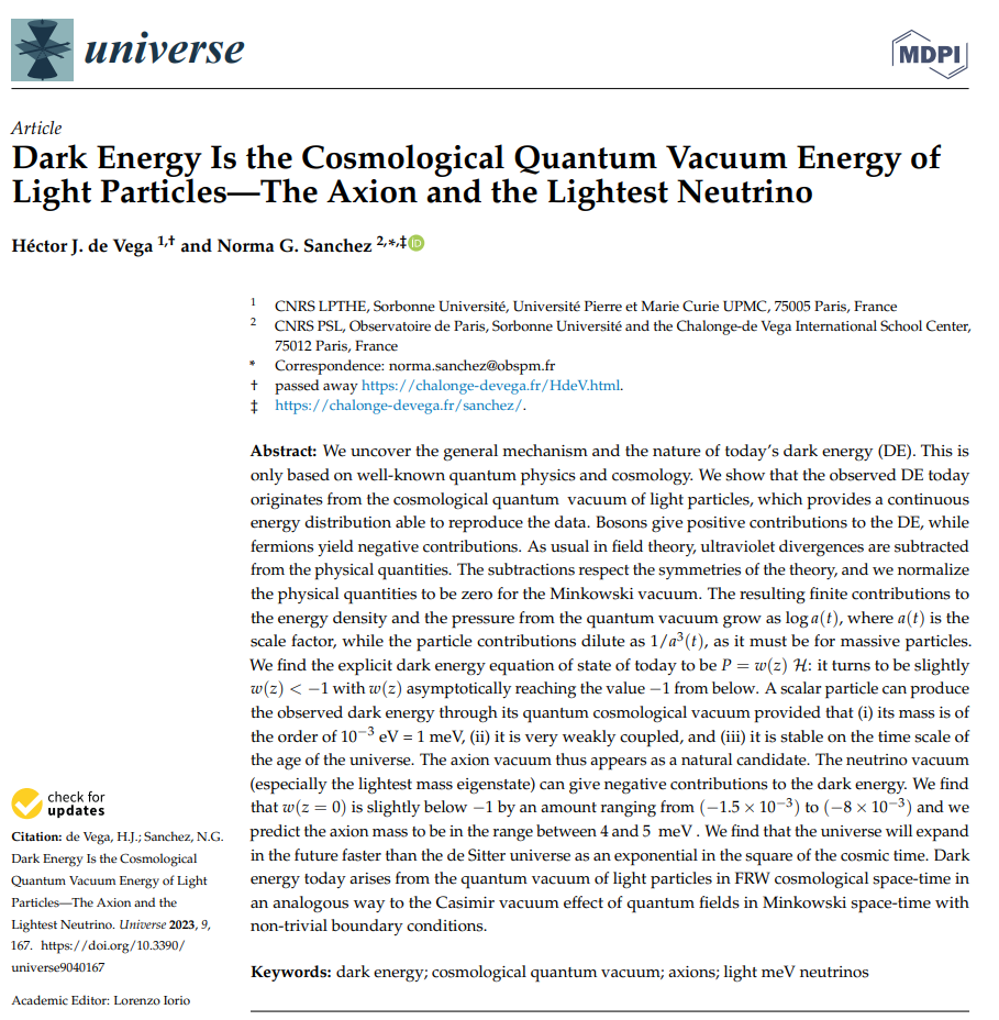 - Dark Energy is the Cosmological Quantum Vacuum Energy of Light Particles. The Axion and the Lightest Neutrino