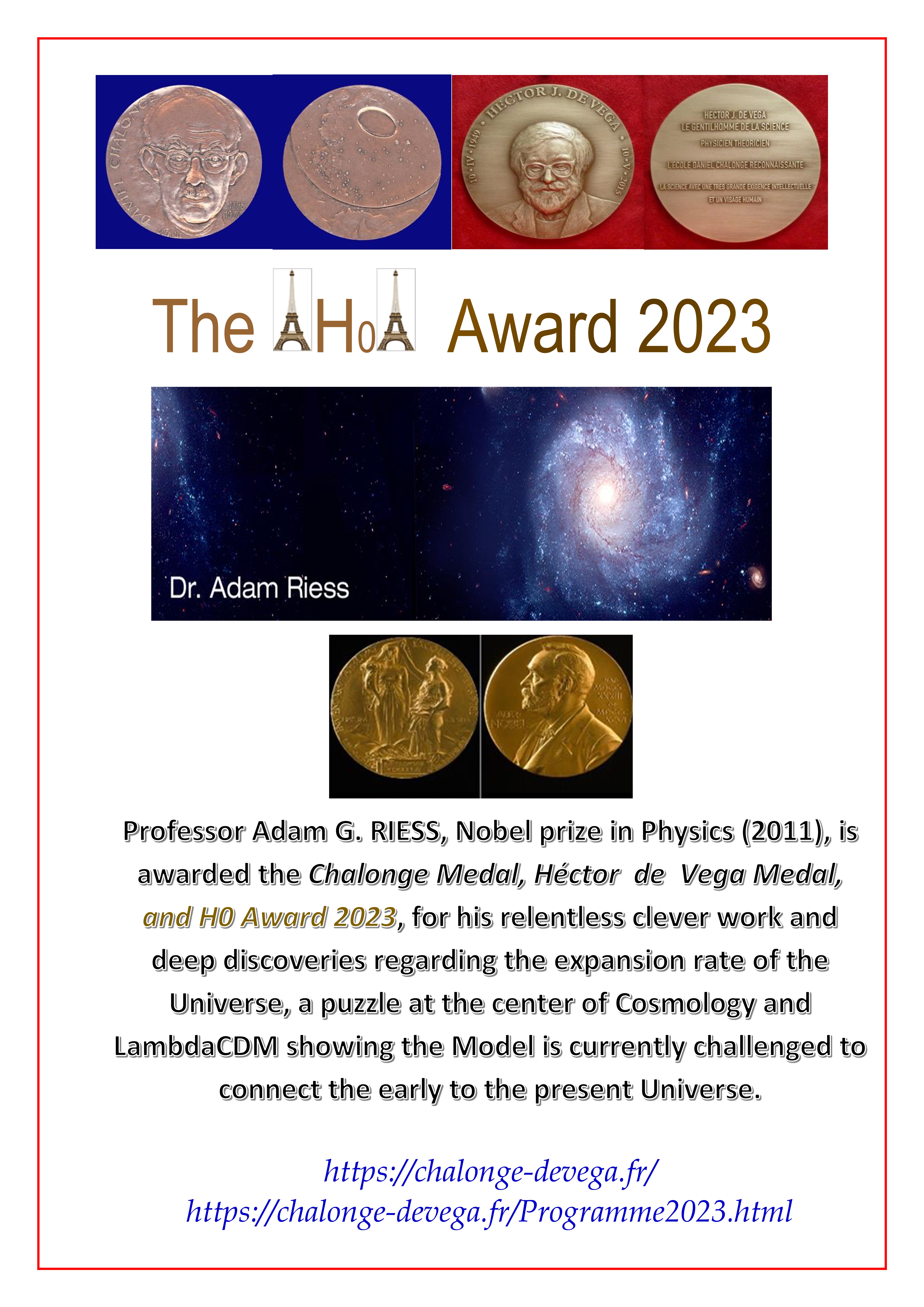 - Adam Riess, H0 Award 2023 : Tuesday 12 December 2023, 4:00PM Lecture by Zoom